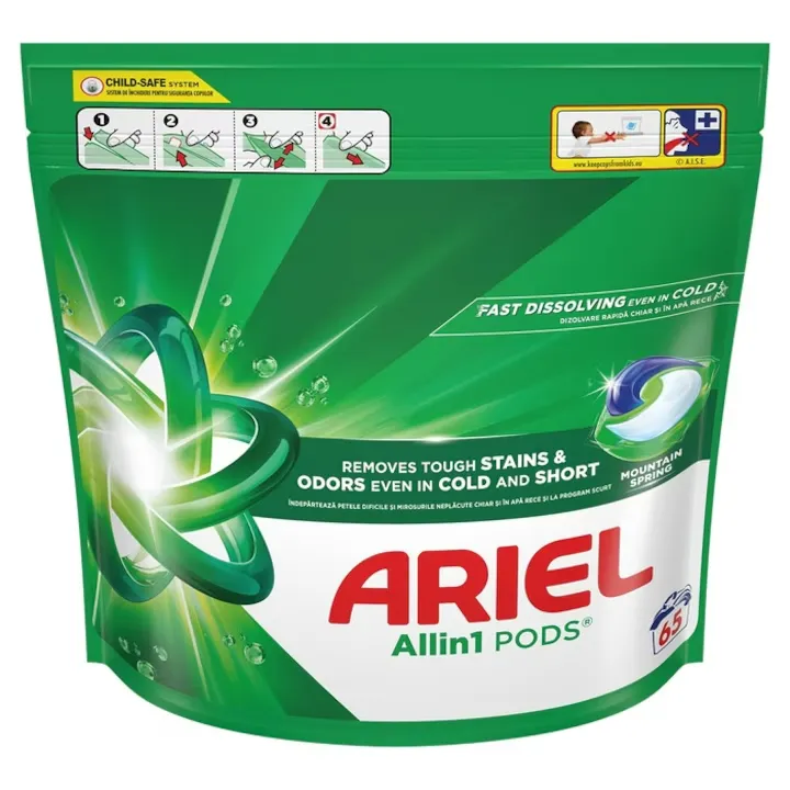Ariel All in 1 Pods 65 capsule reprezintă soluția ideală pentru o spălare eficientă și rapidă a hainelor. Tehnologia avansată All in 1 combină mai multe beneficii într-o singură capsulă, oferind rezultate excelente de la prima utilizare.