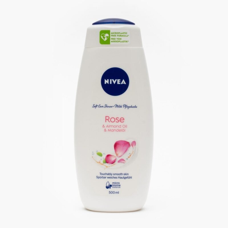 Nivea Gel Duș Rose & Almond Oil 500 ml – curăță delicat și hidratează pielea, cu parfum de trandafir și ulei de migdale pentru catifelare și confort.
