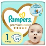 Scutece pentru Copii, Pampers Premium Care, New Born, Nr.1, 2-5 Kg, 72 buc – Protectie si Confort Delicat pentru Nou-Nascuti