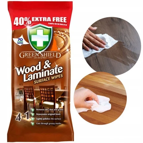 Menține frumusețea și protecția mobilierului din lemn cu Șervețelele Umede Pentru Curățare Lemn și Suprafețe Laminate, Green Shield, 70 buc! Aceste șervețele sunt concepute pentru a îndepărta rapid și eficient murdăria, praful și urmele de apă, oferind un finisaj perfect fără a deteriora suprafețele.