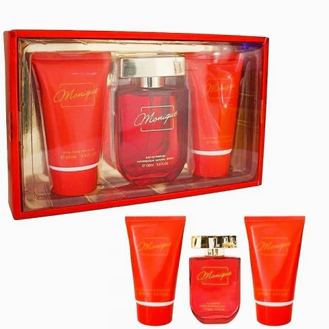 Apa de parfum Monique este piesa centrală a setului, capturând esența parfumeriei de lux. Inspirată de J’adore L’or, această apă de parfum combină flori bogate, precum iasomia și trandafirul, cu note calde și senzuale de ambră, vanilie și tonuri lemnoase. Rezultatul este un parfum sofisticat, care reușește să îmbine dulceața florală cu adâncimea și căldura notelor orientale. Cu o persistență îndelungată, apa de parfum Monique este ideală pentru femeile care doresc să emane eleganță și rafinament pe tot parcursul zilei sau la evenimentele speciale.